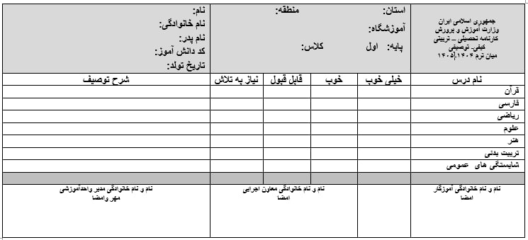 - با قابلیت درج مشخصات مدرسه و امضای معلمان