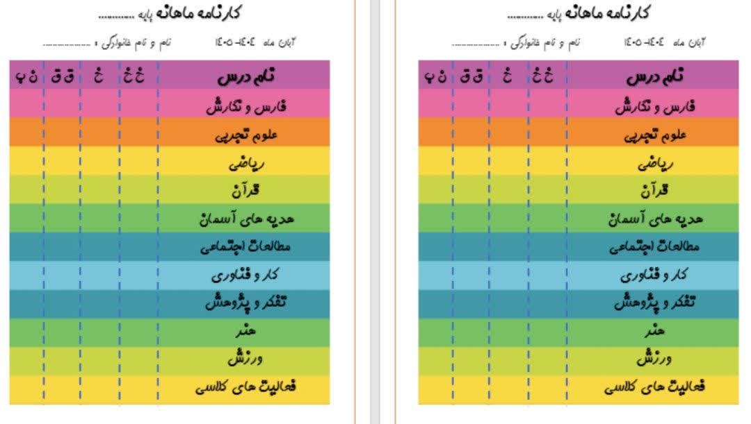 · طرح درس ماهانه درس هدیه های آسمانی پایه چهارم دبستان( آبان ماه )