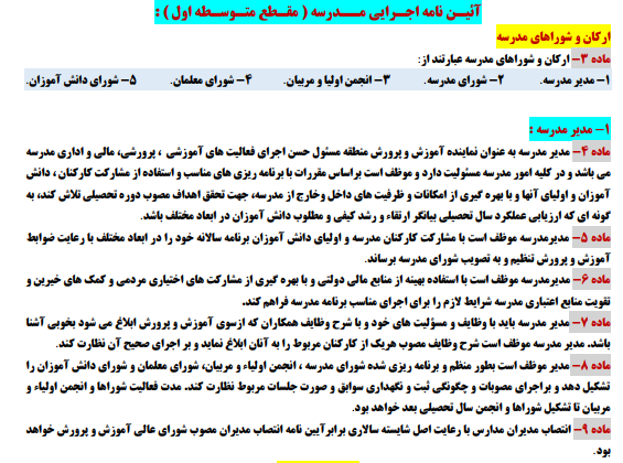سوالات و جزوات مدیریت و کلاس داری آیین نامه ها و ارکان انتصاب مدیران مدارس