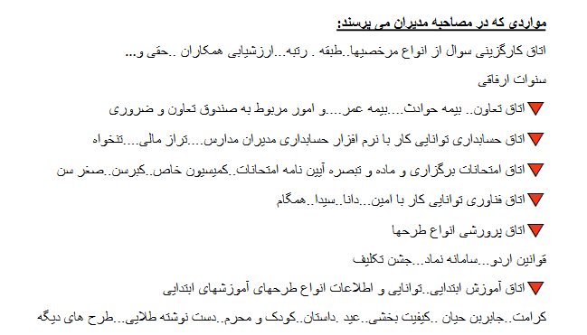 سوالات انتصاب مدیران مدارس از برنامه تعالی مدیریت
