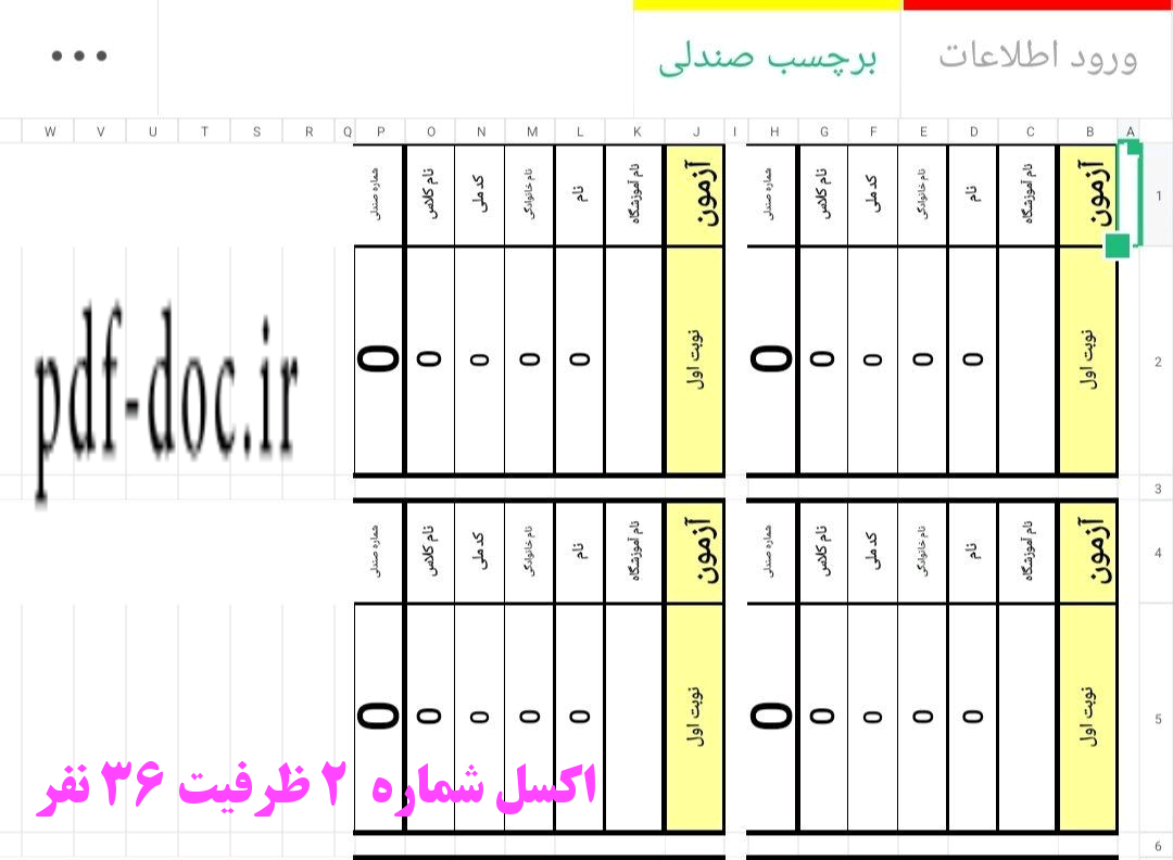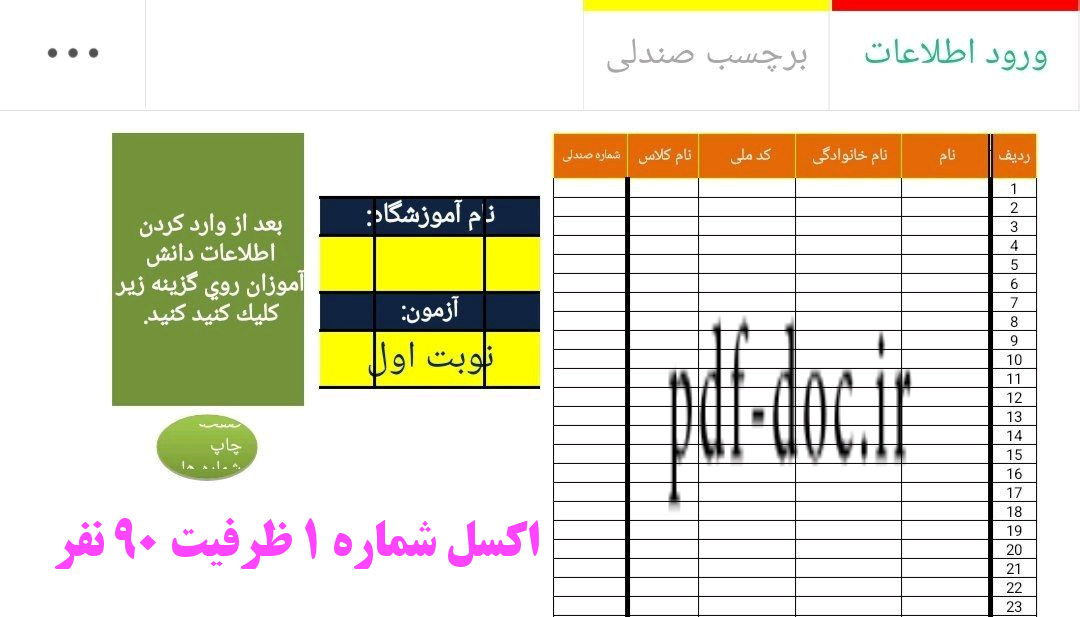 فایل Excel چاپ شماره صندلی امتحانات دانش آموزی یا هر آزمون دیگر
