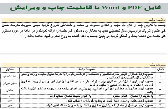 13-فرم تدوین موضوع های قابل بررسی در جلسه ی شورای معلمان