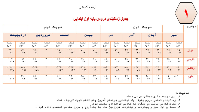 زمان بندی تمامی دروس پایه ها براساس آخرین تغییرات کتب درسی می باشد.