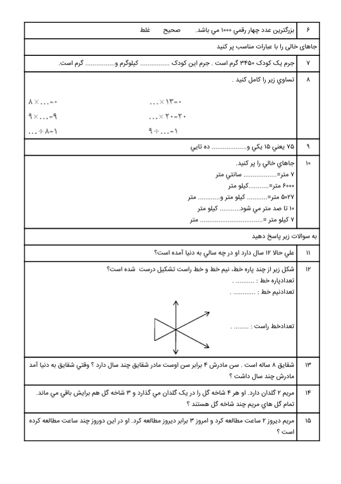 - بیشتر -سوالات امتحانی ترم دوم از کتاب ریاضی سوم دبستان شامل همه فصل ها
