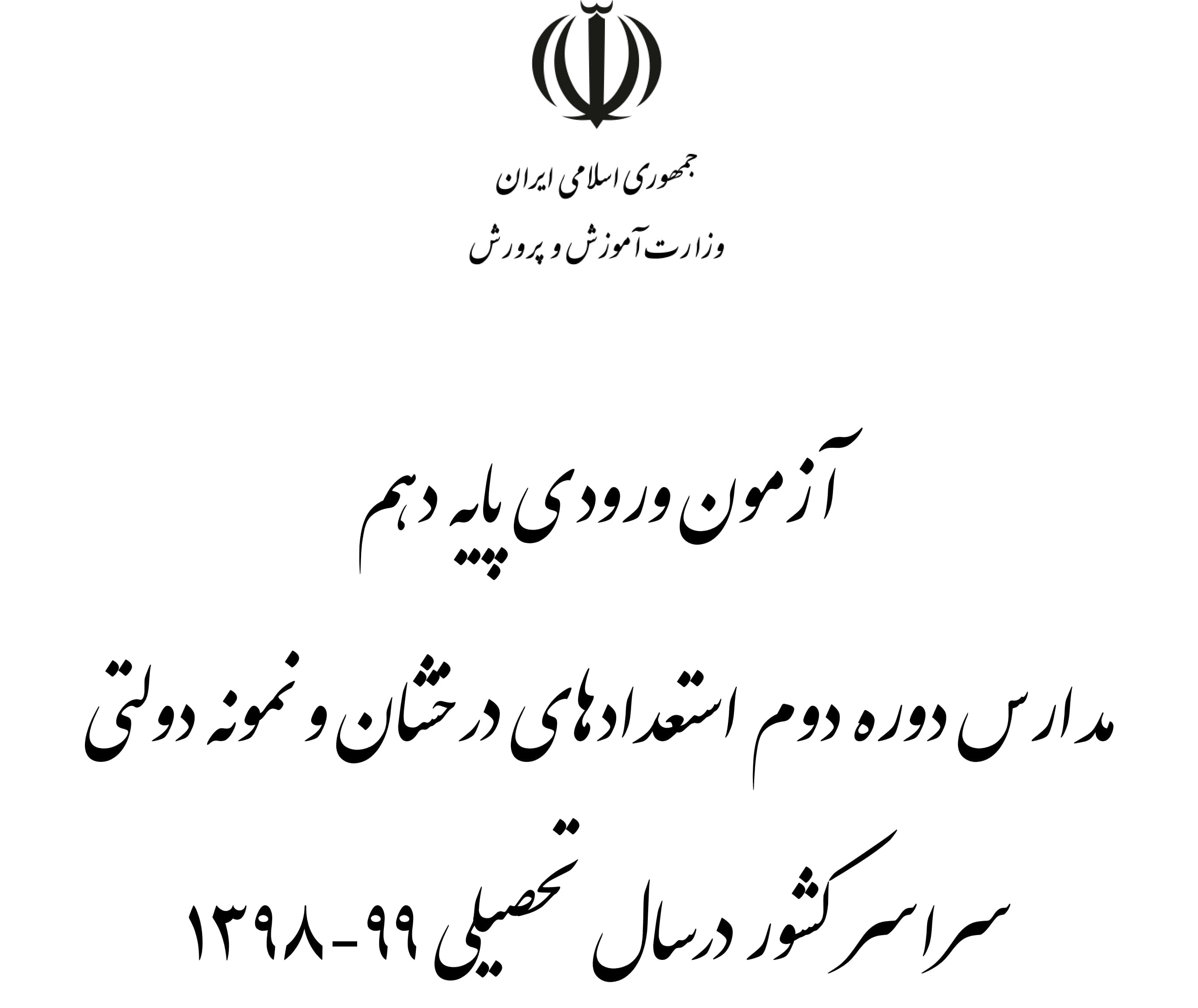 آزمون ورودی پایه دهم دبیرستان های دوره دوم استعدادهای درخشان سراسر کشور در سال تحصیلی 99-1398