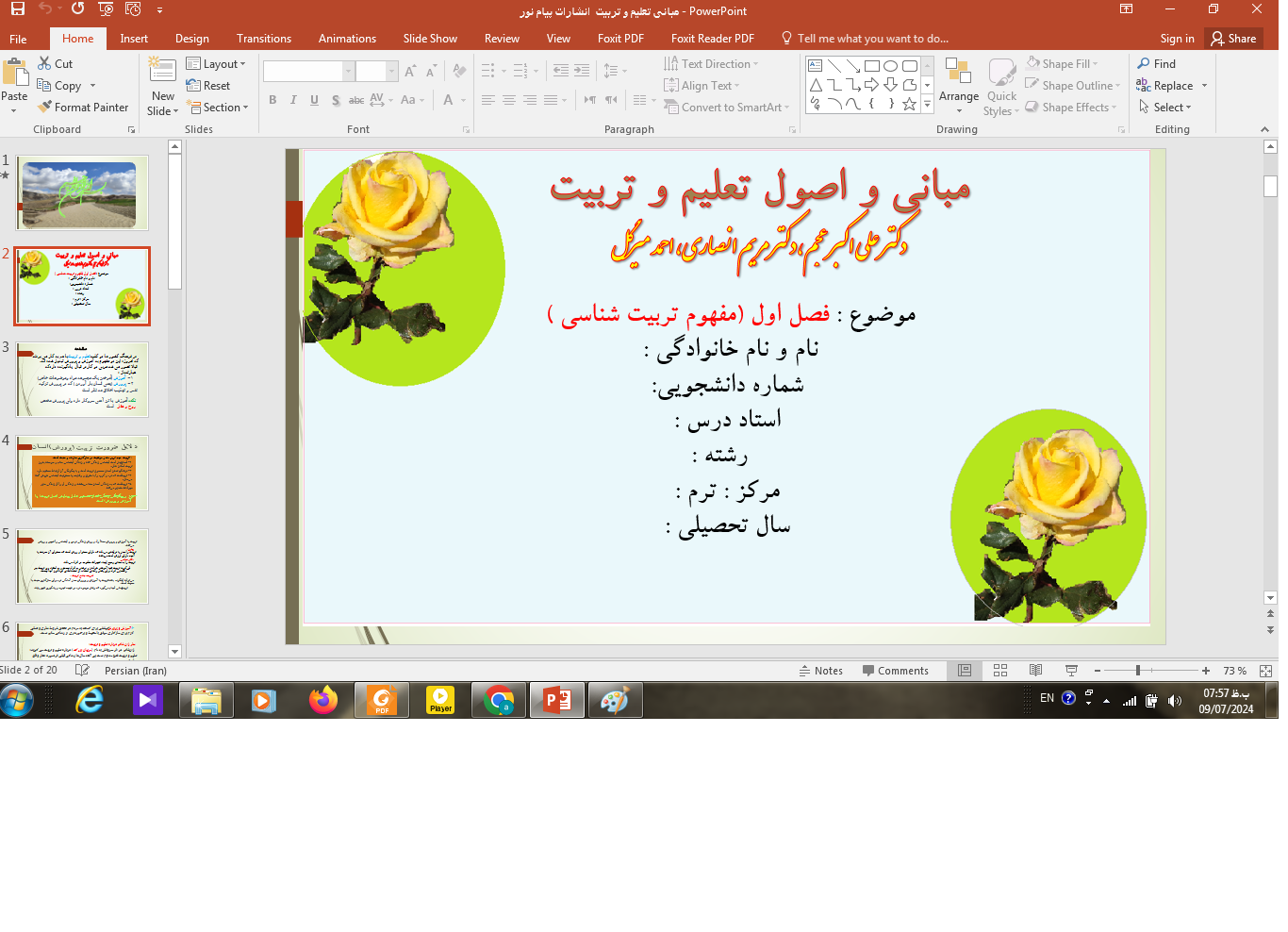 - بیشتر -دانلود پاورپوینت مبانی و اصول تعلیم و تربیت دکتر علی اکبر عجم،دکتر مریم