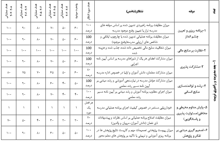 • امکان پایش و ارزیابی دقیق اقدامات مدرسه بر اساس شاخص‌های سند تحول