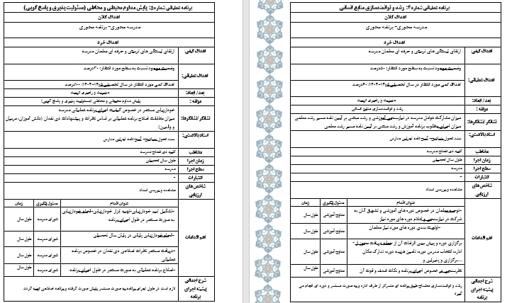 مجموعه ای از فعالیت های اجرایی مشخص، زمانبندی شده، با مسئولیت معین، که در راستای تحقق اهداف مدرسه طراحی و اجرا می شود.