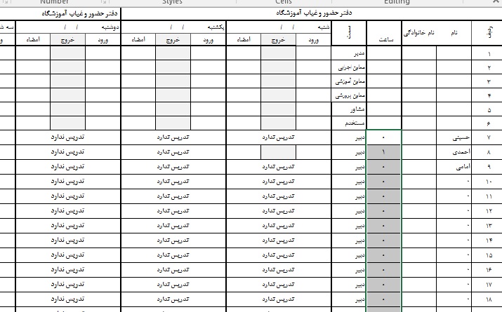 دفتر حضور و غیاب دبیران بر اساس روزهای تدریس (جدید)