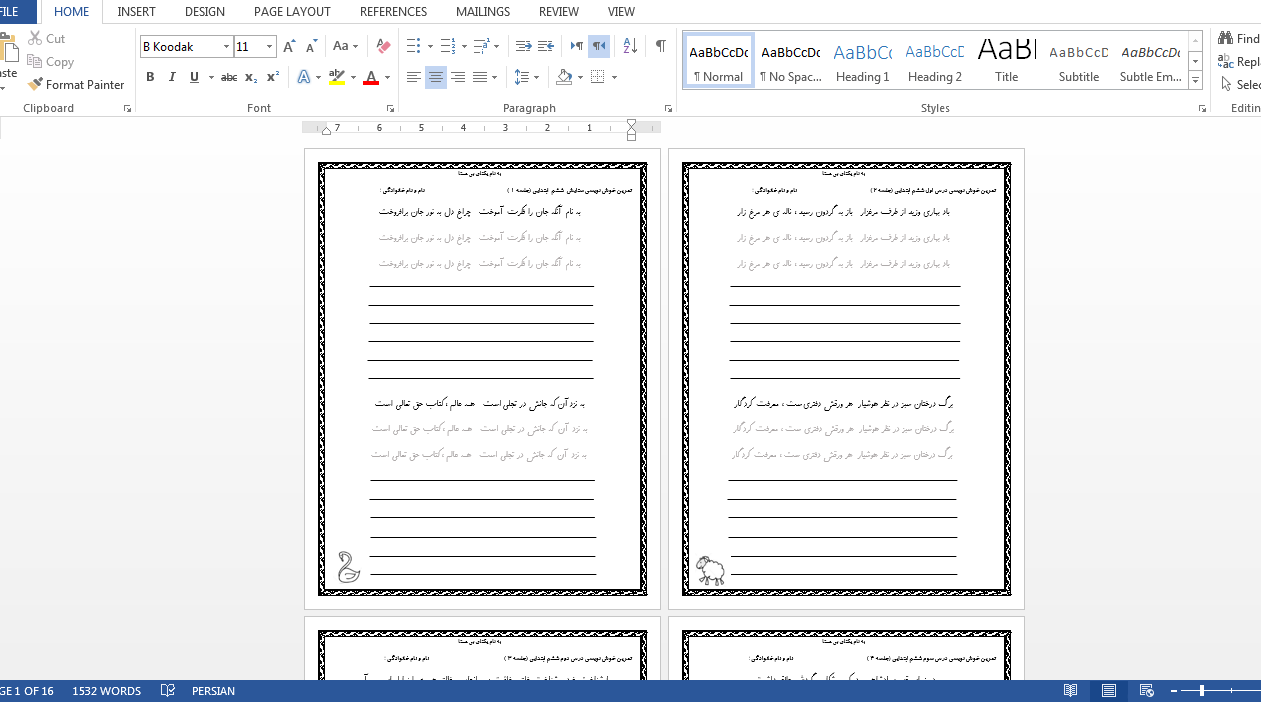 دانلود دفتر کاربرگ خوشنویسی ششم دبستان در قالب فایل WORD