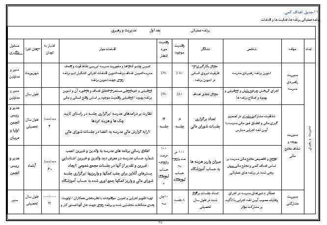 - طرح و برنامه سالانه در حوزه توانمند سازی مدرسه