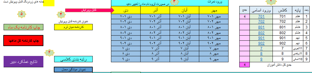 - طراحی در 4 ستون نمره ماهیانه برای ثبت ارزیابیهای مستمر